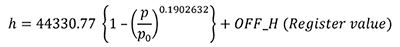 OFF_H = 用戶輸入的根據當地氣候條件和美國標準大氣壓 1976 (NASA)