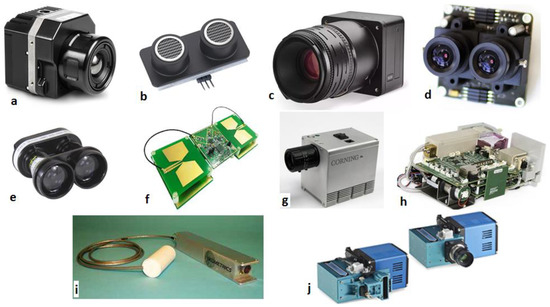 無(wú)人機(jī)04 00034 g004 550 圖4. 采礦無(wú)人機(jī)上常用傳感器的示例:(a)紅外傳感器[ 123 ],(b)超聲傳感器[ 124 ],(c)RGB攝像機(jī)[ 125 ],(d)立體攝像機(jī)[ 126 ],(e)激光測(cè)距儀[ 126 ],(f)超寬帶雷達(dá)(UWB)[ 127 ],(g)高光譜傳感器[ 128 ],(h)磁傳感器[ 129 ],(i)氣體探測(cè)器[ 130 ], (j)可見(jiàn)和近紅外光譜范圍(VNIR)[ 131 ]。
