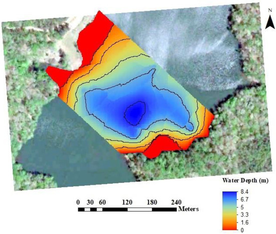 無人機04 00035 g005 550 圖5. 任務(wù)計劃范圍內(nèi)的Issaqueena湖水深圖。
