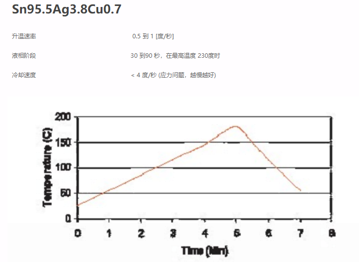 Sn95.5Ag3.8Cu0.7 是一種固–液共熔合金(215℃ – 225℃),是迄今為止在微電子界確認(rèn)的錫 – 鉛最佳替代品。銀的存在,提高了機(jī)械特性。相比于Sn63Pb37,它更容易獲得,并且其焊接工藝更加緊密。更重要的是,這種材料引起的應(yīng)力相較于前者低25%。