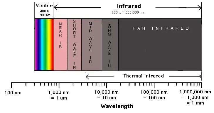 圖 1.可見光和紅外光譜。圖片由 加州大學(xué)伯克利分校的Digital Earth Watch提供