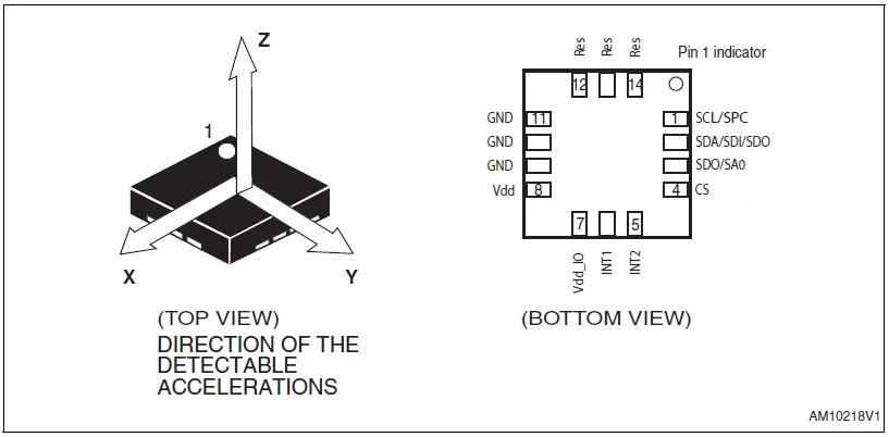圖 3. STMicroelectronics MEMS 3 軸加速度計。圖片取自 LIS2DH 數(shù)據(jù)表。