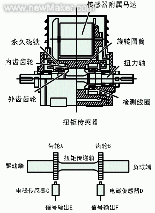 扭桿式扭矩傳感器在早期的EPS中應(yīng)用比較多,但由于是接觸式的,工作時(shí)產(chǎn)生的摩擦使其易磨損,影響其精度,將會(huì)被逐步淘汰。