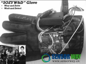 假如司機喝了酒,手套上的氣體傳感器就能從人體呼出的氣體中敏銳的捕獲到酒精,并確定酒精濃度,這時蜂鳴振動器就會發(fā)出聲響,提醒司機請勿再駕車。倘若司機不聽警告,手套里的GPS追蹤系統(tǒng)會將此情況通知附近的交警。