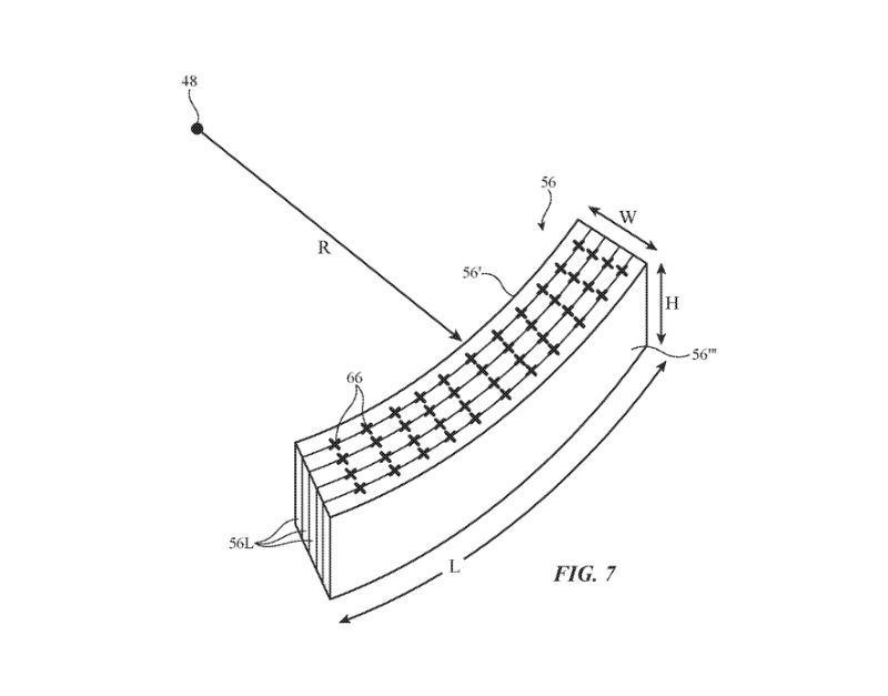 這是關(guān)鍵部分,這種光學(xué)傳感器可能會(huì)被布置并彎曲,以占用盡可能少的空間。蘋果公司說(shuō):“每個(gè)光控部件都可以由一疊層壓彎曲的光控膜形成! “用于堆疊的光控膜可以使用具有彎曲表面的層壓工具壓制成所需的彎曲形狀。”