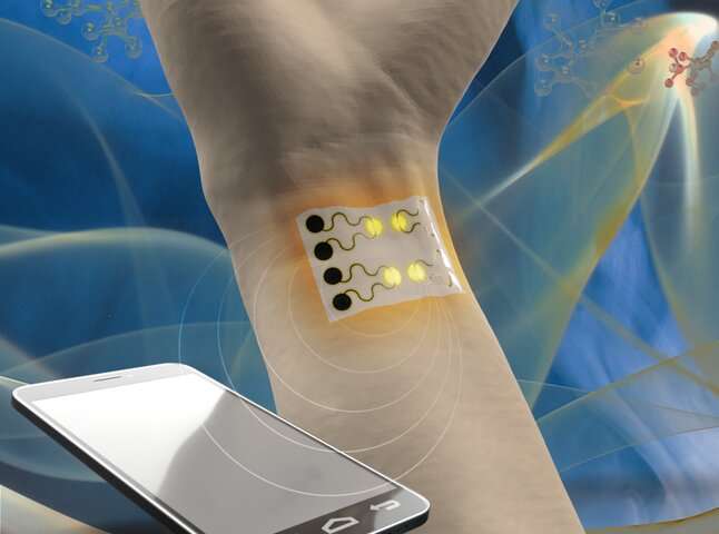 Cheng和他的團隊使用激光對類似于石墨烯的高度多孔的納米材料單線進行圖案化,以用于檢測氣體,生物分子以及將來的化學(xué)物質(zhì)的傳感器。在設(shè)備平臺的非傳感部分,團隊創(chuàng)建了一系列蛇形線條,并用銀涂層。當(dāng)它們向銀上施加電流時,氣體感應(yīng)區(qū)域會由于明顯更大的電阻而局部加熱,從而無需單獨的加熱器。蜿蜒的線條使設(shè)備像彈簧一樣伸展,以適應(yīng)可穿戴傳感器的身體彎曲。