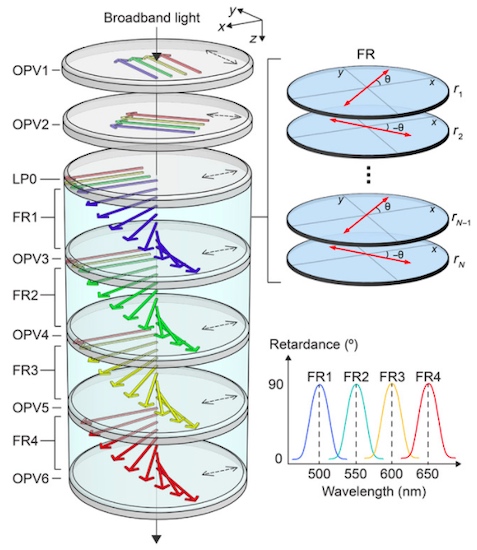 P-OPV對光的響應(yīng)根據(jù)光的偏振而變化,而延遲器則根據(jù)其偏振態(tài)以確定性的方式分散光。利用這種架構(gòu),該傳感器可以檢測設(shè)備中足夠小以適合智能手機(jī)的兩種類型的光。