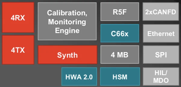 總之,一些重要的硬件產(chǎn)品包括 4 個(gè) Rx 和 Tx 通道、一個(gè)雷達(dá)預(yù)處理硬件加速器塊、4 MB 片上存儲(chǔ)器以及一個(gè)內(nèi)置校準(zhǔn)和監(jiān)控引擎。由于這些改進(jìn),TI 表示與市場(chǎng)上的其他解決方案相比,AWR2944 的雷達(dá)分辨率提高了 33%,雷達(dá)范圍增加了 40%。增加的雷達(dá)范圍歸因于基于多普勒分多址 (DDMA) 的信號(hào)處理,這提高了 SoC 從更遠(yuǎn)的地方檢測(cè)迎面而來(lái)的車輛的能力。