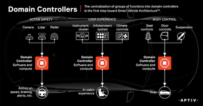 在 ADAS 中,域控制器用于不同的用例,包括主動安全、用戶體驗和車身控制。圖片由Aptiv提供