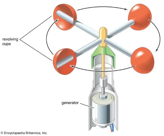 轉(zhuǎn)杯式電子風(fēng)速計(jì)示意圖。圖片由大英百科全書提供