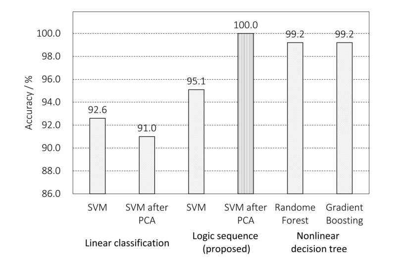 當(dāng)應(yīng)用 PCA(主成分分析)進(jìn)行降維,然后進(jìn)行 SVM 分類時(shí),準(zhǔn)確率達(dá)到 91.0%。然而,在 PCA 轉(zhuǎn)換的 SVM 邊界上應(yīng)用邏輯排序?qū)崿F(xiàn)了 100% 的預(yù)測(cè)準(zhǔn)確率,優(yōu)于隨機(jī)森林和梯度提升模型,后者達(dá)到了 99.2%。這種方法表明,簡(jiǎn)單性和邏輯性可以勝過(guò)復(fù)雜性,尤其是在受限環(huán)境中。